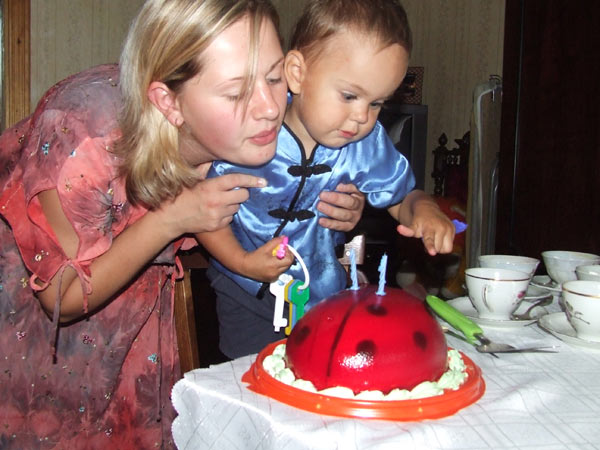 Фотки у всех чудные, детки выросли. А у нас с фотками сложности, в начале дня рождения Андрюша сломал фотик, даже торт не успели запечатлеть, у нас тоже была "божья коровка"