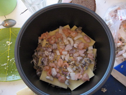 Ура!  Хоть рецепта по приготовлению лазаньи с морепродуктами я не нашла, но начитавшись топика замутила свой. Выкладываю с фотками, может кому будет полезно, особенно для любителей морских козявок.