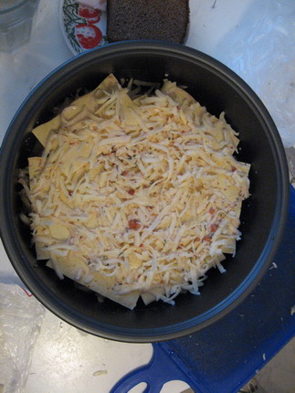 залила соусом - молоко 0,5 с приправой Болоньез от кнорр и немного своих трав сыпанула и два часа получилось в режиме тушение. и вот результат: