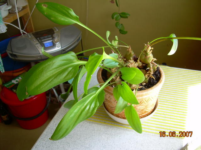 Девушки, помогите с опознанием - в книге не нашла, в инете тоже. Спасла на работе цветок, который служил на подоконнике пепельницей . Как ухаживать - не представляю. Стоит в рассеянном свете, поливаю умеренно. Одна дама сказала, что видела похожий, цветет мелкими белыми цветами. Как же он называется? спасибо заранее.