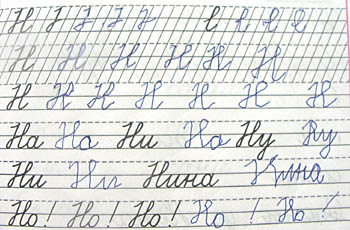 Ребенку 6 лет и 7 мес. Мальчик. 1 класс. С мелкой моторикой с малых лет все было в порядке. Письмом до школы не занимались - только много раскрашивали. Раскрашивает прилично. Как вы считаете, нормальный у нас почерк для начала 1 класса или рука к письму еще не готова? |