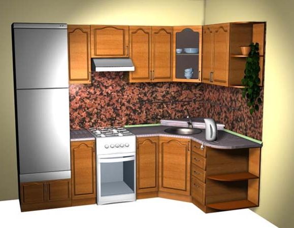 буквой Г, вроде ,она 6 кв.м. , вытянутая, с коридором от прихожей узким, после этого коридора справа в кухне шкаф с трубами, далее мойка (по ихначальной задумке).