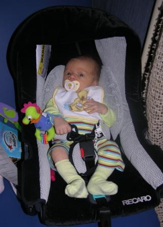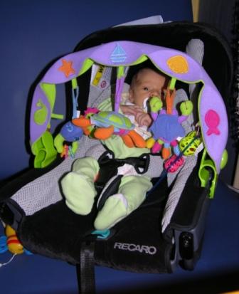Мы ехали так из роддома, еще у нас дома есть электронная качель от 0+, мы в ней тоже с рождения укачиваемся - просто спасение