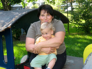 А это мы с крёстной Сабиной, когда она идет домой - ор стоит неимоверный - ну просто мать родная ушла....