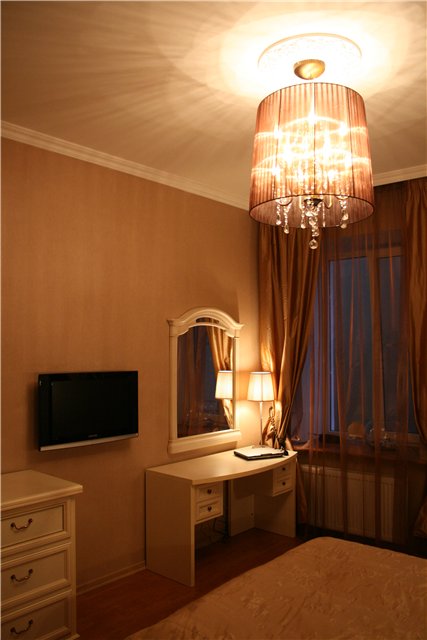 Как в 6 ти звездочном отеле. Очень нежная теплая и расслабляющая. Класная люстра. Два окна в очаровательных занавесках. Здорово  | |