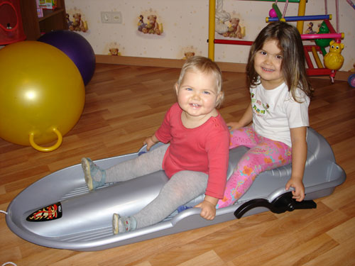 А мы катались на простых, там двое без проблем умещаются. Только вот когда маленькие были, я боялась их на санках простудить, а сейчас детям скучно на санках, они постоянно носятся!