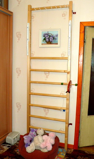 Сподвигла нашего папу на подвиг - самодельный комплекс. Покупные нам не подходили ввиду а) нехватки места в однокомнатной квартире б)нежелания делать "под потолок" ввиду безопасности пока еще малого ребенка в) ограниченного бюджета![]() Вот оно, наше творение - верхние ступеньки специально не поставлены, возможно когда-нибудь дополним. Трапеция - на кронштейнах, которые...складываются!! ну и горка тоже убирается. Дочка в полном ![]() |