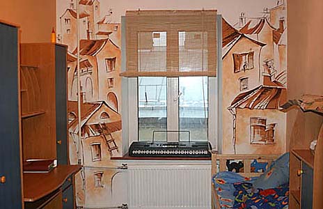 А роспись стен в детской тоже сами? Здорово получилось!!!!! |