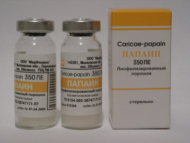 Карипазим - протеолитический ферментный препарат прямого действия растительного происхождения, полученный из латекса дынного дерева (папайи), в медицинской практике используется раствор его лиофилизированного порошка белого цвета. Единицы активности выражаются по классификации международной федерации фармацевтики (100 мг соотетствует 350 Fip-ПЕ) Фармакологические свойства Карипазим обладает протеолитической активностью. Препарат расщепляет некротизированные ткани, разжижает вязкие секреты, экссудаты, сгустки крови. По действию карипазим близок к химотрипсину и трипсину. Показания Карипазим применяется при ожогах III-а степени в качестве средства для ускорения отторжения струпов и очищения гранулирующих ран от остатков гнойно-некротических тканей. Я так поняла, что у него просто торговое название другое |