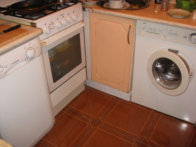 у меня в "корабле" на кухне и стиралка, и посудомойка полноразмерные. Мойка стоит там, где и должна по плану, к ней тянутся водосливы от машин, а забор воды - из стояка в туалете, протянута труба небольшого сечения. Стиралка стоит у окна (где по плану была плита, она уехала к стене, а посудомойка - посередине, соответственно между стиралкой и плитой).