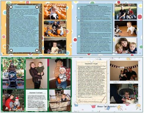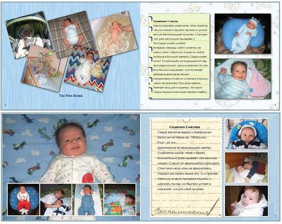 Хочу с вами поделиться идеей. Я в прошлом году Саше на годик сварганила фотокнижку. Уверена что в Питере тоже можно такую штуку сделать. Тут много сайтов которые печатают книжки с твоих фото. Туда грузшь фото, выираешь фоны, делаешь надписи и вставляешь фотографии. У меня на каждой страничке фото за каждый Сашин месяц от рождения до года и рассказик о его достижениях за этот самый месяц.