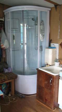 Я мечтала о бане. Не получилось. Поставили кабинку за 12000 прямо в летней кухне. Красота...Водогрей. Две сообщённых бочки на крыше времянки. Жалко конечно кабинку. У нас такая вода. ![]() Но дети в восторге. И мы тоже. Закроешься. Не дует. А дети вообще как в ванной. |