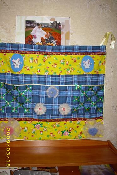 ![]() ![]() Вот сегодня доделала еще одни кармашки - висеть будут над комодиком - в верхнем и нижнем ряду неглубокие кармашки по 4 шт, а посередине 3 глубоких кармашка. Меня прям как магнитом тянет к машинке - раньше никогда не шила и не вязала, а тут как мания какая то ![]() ![]() |