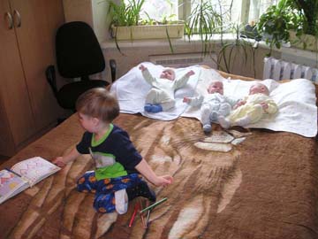 я вот тоже представить не могу, как вы управляетесь с ними? как купаете?как на улицу гулять выходите? этож как надо ухитриться их всех разом одеть чтоб не вспотели?Не устаю вами восхищаться!!! |