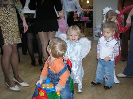 Мы хоть и не доросли до таких масштабных мероприятий, но видно было, что подготовка проведена была огромная, люди старались, а все небольшие минусы лично мы списали на свою усталость от большого количества народу ( мы всегда устаем) и отсутствие папы, который мог бы помочь в беготне за дЕтем. А то мне было тяжко и фоткать, и следить и обЧаться... .Вобщем хотелось посмотреть всё, а представление не посмотрели (правда и не расчитывали, но уж больно хорошие отзывы в процессе пошли) КОТА не сфоткали!!!,шампусика не выпили и практически ничего не съели... А уж про памперс я вообще молчу.(если кто чего учуял-извинЯйте! даже бейджики не смогла рассмотреть у девочек, чтобы узнать знакомых, а уж сфоткать своего с другими детишками в таких красивых карн. костюмах- ВООБЩЕ НЕ ПРЕДСТАВИЛОСЬ ВОЗМОЖНЫМ! Хочу побыстрее "вырасти" и пойти опять на ёлку! Фотки вот наши. Узнавайте себя, кто по "ножкам", кто по деткам ![]() |