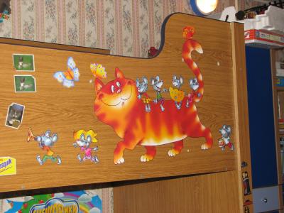 , машинки на кровати и котик, луну с мишкой ещё ни как не решить куда клеить![]() |