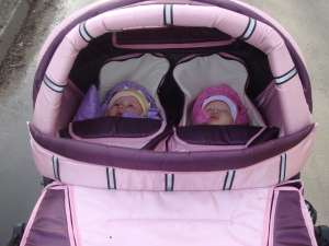 коляска-трансформер для двойни Виолетта Твин - 4 положения спинки, перекидная ручка, теплые накидки на ноги, легко складывается пополам, б\у очень мало, цвет бордо с розовым. - цена 3500рублей.