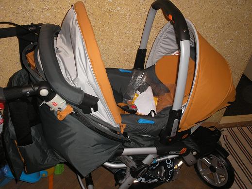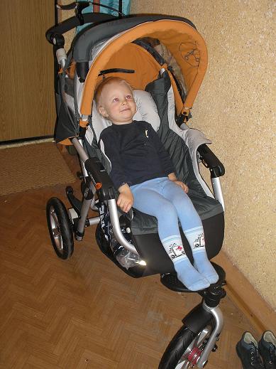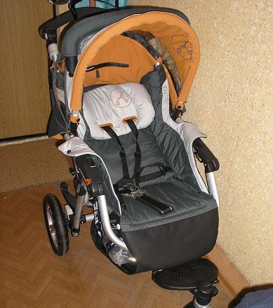 А еще все что оранжевое может стать стальным и наоборот, все двухстороннее. К ней еще куплены: конверт теплющий на след.год на синтепоне и флисе оранжевый, накидка на ноги двухсторонняя тоже с синтепоном проштая, подножка для димки типа скейтборта (заказана).