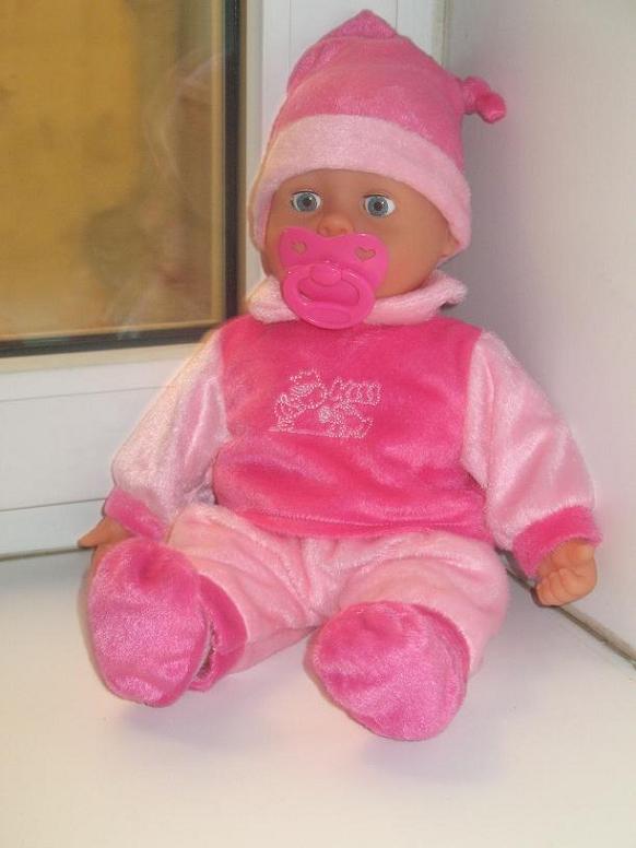 бабушка купила вот такую Лялечку, тельце мягкое, говорит мама,папа, ай, да, чихает, храпит-типа спит, плачет очень симпатичная |