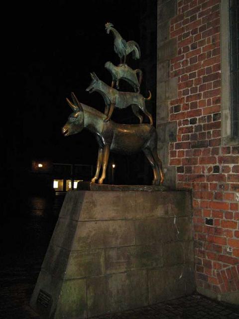 Ночной Бремен тоже красив, но самое смешное, что именно ночью мы нашли памятник Бременским музыкантам . И Собор Святого Петра сфотографировать удалось с интересного ракурса))).