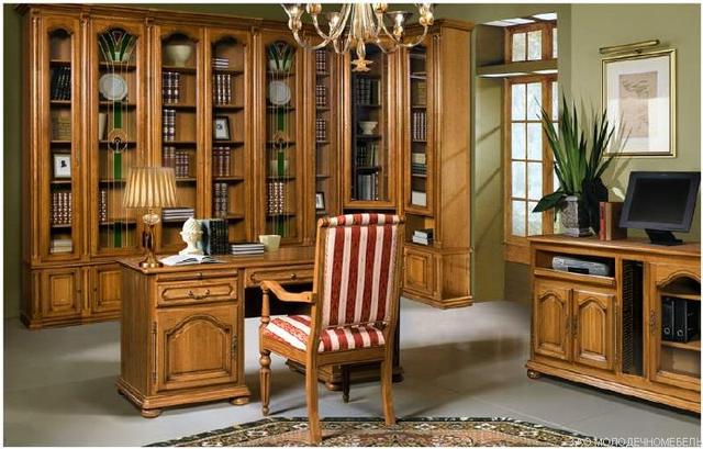 Там есть несколько видов. Мы заказали похожую, но без вензелей, другого цвета и с другими ручками, сами стекла у нас тонированные, т.е. в совр.стиле. Свою пока не покажу, у нас ремонт не закончен, библиотека стоит еще в упаковке.