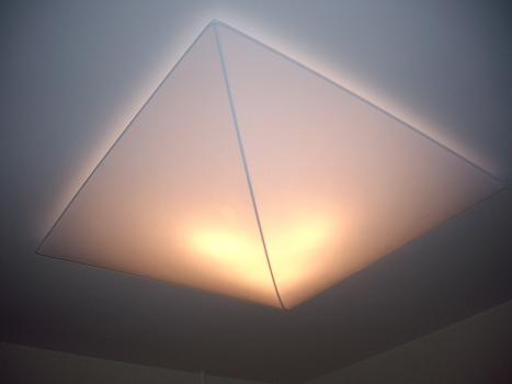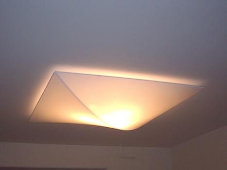 А вот такой парус висит у меня в спальне. Тут принцип такой- каркас, а на него тряпочка натягивается. Надо постирать- тряпочку сняли, постирали, потом натянули. Ткань может быть выполнена с такими узорами (у меня такой), или простая. Цвет- белый, либо беж. Но беж достаточно насыщенный, желтоватый. Я купила белую, но поставила энергосберегающие лампы с желтым светом. Поэтому парус выглядит таким кремовым при включенном свете. Фирма производитель известная, так что в любом салоне света их вам предложат. По форме бывают еще круглые. Ну и несколько вариантов размеров. В живую (впрочем я там и покупала) представлены парусы в салоне светильников на Большом Проспекте ВО, рядом с салоном диванов СУМО. Вот фотографии: