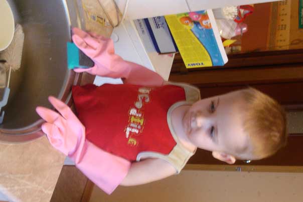 1. Это мои изыски. Решила приготовить чего-нить этакое на Софины 8 месяцев. 2. Наша именинница. 3. Максим помогает мыть посуду. |