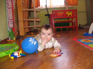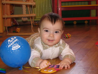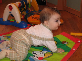 И еще чуть-чуть. Митяй наконец пополз как я и хотела на четвереньках, а не как гусеница. Гося по гусеньчьи у него гораздо резвее получается. Пока осваивает четвереньки