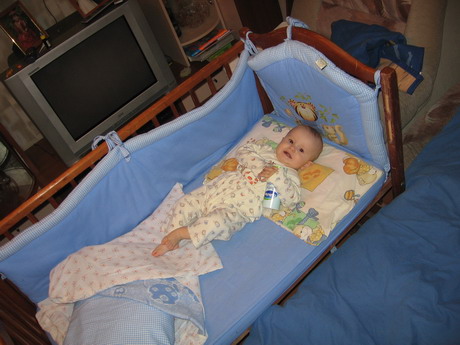 ![]() (это я мужа таки добила, принес сегодня розу на 14-ое февраля.ага смотрим на дату )2.вот что у нас получилось,не стали ничего переставлять, всё равно бы пришлось кроватку тягать туда сюда. подложили Дашины тапки, что бы не качалась осталось завтра ножки обмотать, чтоб пол не царапать...Голь на выдумки хитра Даник был очень удивлен, как это он тут лежит, и мама рядом и сися тоже![]() ![]() 3.наше сегодняшнее чп. |