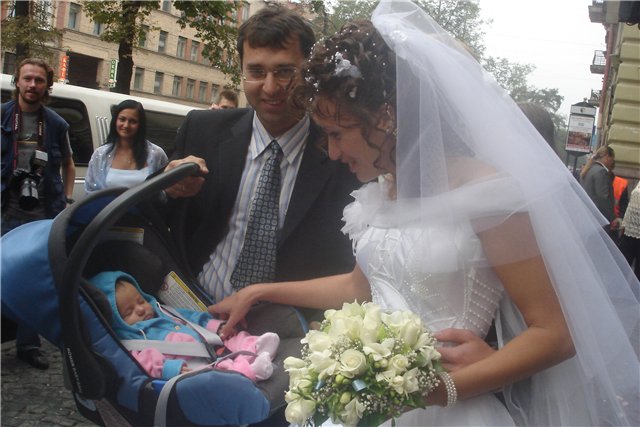 С утра конечно,было настроение не идти никуда, болит горло, нос заложен всё утро полоскала и брызгала всякие капельки, вроде сейчас получше, глотать все равно больно.Алиса произвела на свадьбе фурор,фотограф от нее не отходил,так что будут у нас теперь профессиональные фотки,а пока в А пока вот фотка с нашего фотика ![]() |
