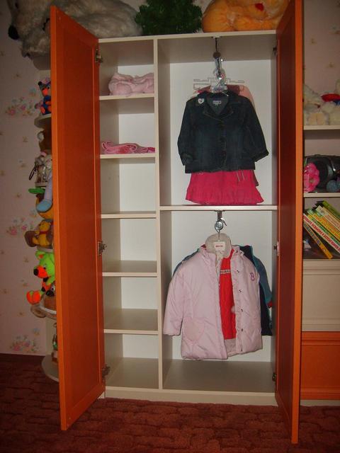 вечером сделаю, ладно? Там сейчас дочка спит. Глубина стандартная, не помню точно, посмотрю. Шкаф разделен на 2 отделения. Одно большое, там 2 штанги (2 яруса), наверху и внизу - полки. Второе отделение - просто полки для сложенных вещей. Момент, который я не предусмотрела - штанги ближе к двери входной, а полки - к стене. К ним чаще приходится лезть, а удобнее было бы, если бы именно полки были ближе к двери.