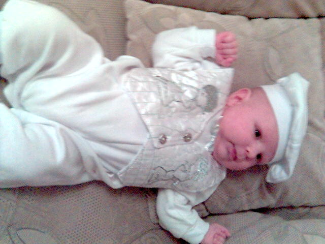 Это мой старший. На первой фотке - в роддоме чем то накормили, на второй мы дома