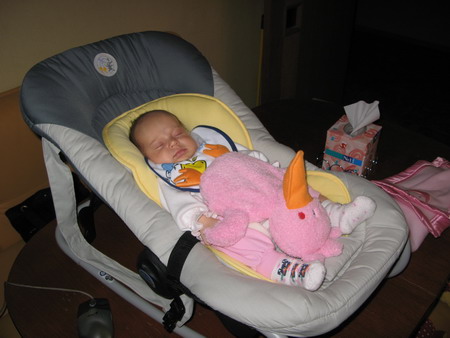 А моя Милашка теперь только в шезлонге и спит. Скоро забудет, что у нее кровать есть. Вначале она у меня пристрастилась в автомобильном кресле спать, но я начала переживать за позвоночник. Все-таки, хоть оно и 0+, но все равно лялька в нем лежит как крючок. Пришлось срочно покупать шезлонг. Теперь спит, как королевна.
