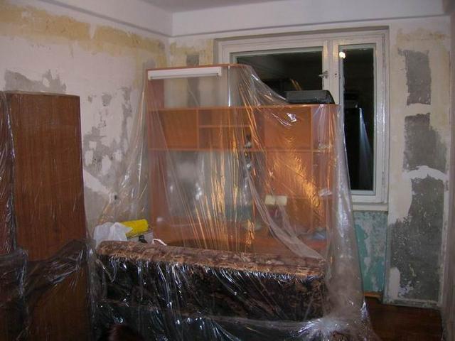 Мы делали на старой квартире. Делали покомнатно. Выносится все, размывается потолок (водой), отдираются обои, снимается пол...