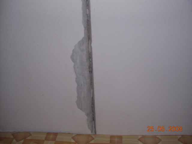 , а вот что с потолком делать - совсем не понимаю . Поможите советом! На данный момент имею щель между двумя плитами (во всю длину комнаты) и кучу отваливающейся штукатурки (или это не штукатурка...) с потолка. Что сделать, чтобы всего этого не было? С чего начинать, что потом делать....Предполагается, что года через 2-3 будет проводиться хороший ремонт во всей квартире, поэтому сильно вкладываться сейчас не хочется, но и жить в такой комнате тоже уже желания не возникает... вот так это выглядит |