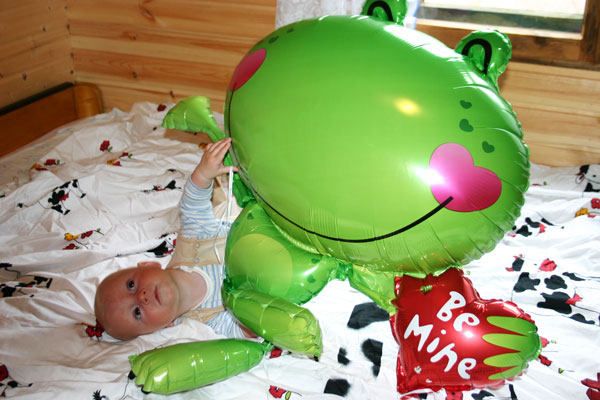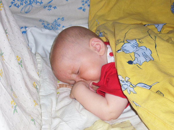 вот покажу вам фотки Сашки!!!! значится так!!! ![]() 1. Сашка с лягушкой. Зацените плиз мое постельное белье. Там его немного видно. Пол года хотела его и наконец-то купила в оптовых закупках. ![]() 2. просто мечтательный Санька 3. И опять мы спим....... |
