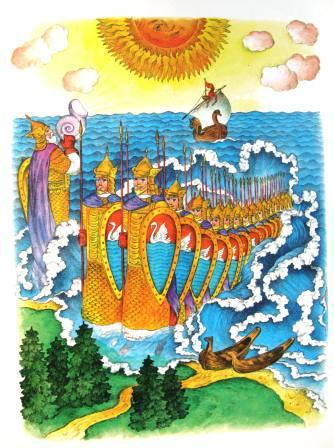 Как пред солнцем птица ночи, Царь умолк, ей глядя в очи, И забыл он перед ней Смерть обеих сыновей |