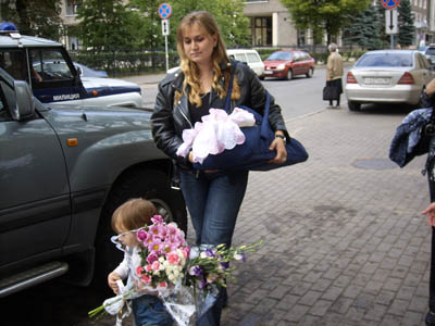Вот такое лицо обычно бывает к мамы с двумя детьми, одному из которых доверили нести цветы (читай - подметать асфальт)