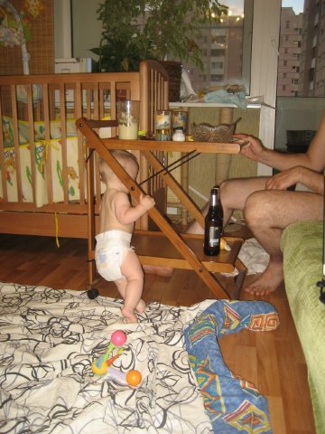 Снято тем, что под руку попалось. Встали! 7 месяцев и неделя))) На Колю внимания не обращайте, совсем нет времени его отрезать))) |