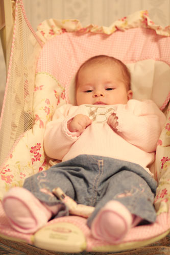 Ага. Она. Можно к ней приспособить при желании. Зато ребенку так интересно! А потом на кроватку переместим.
