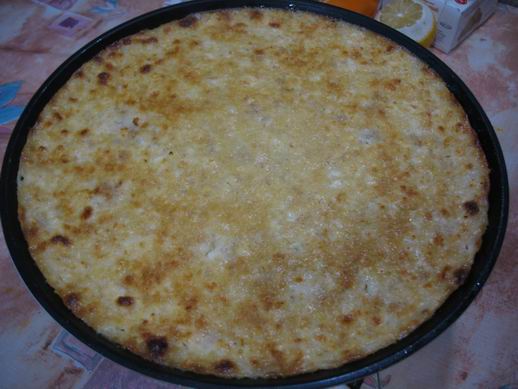 потом, когда пирог испекся, я чуть-чуть ковырнула сверху на пробу - манка и сахар заскрипели на зубах и я расстроилась