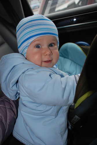 Вот еще Сашка в машине разлекается...играет со своим сиденьем