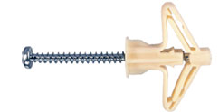 Между прочим, дюбеля эти продаются не только в коробочках по 50 штук за рублей 400, но и по несколько штучек в пакетиках (во всяких Максидомах, Касторамах и прочих К-Раутах). Вам на один такой крепежный элемент, как на фото, надо всего 2 таких дюбеля. |