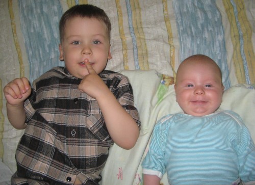 А еще Федька подошел к компу пока я мальчишками любовалась, тычет пальцем в них и говорит - а это что такое? Я ему объясняю: это два братика, Кирюша - старший, Андрюша - младший и т.д. (заодно поглядываю на Федьку - как ему вообще идея братиков