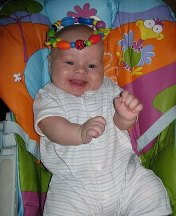 Вообще малыш начал вести себя по-новому: раньше просыпалась от плача когда ребенок есть хотел, потом от сосания пальца, теперь от того, что дубасит ногами по кровати, играет в игрухи в темноте, они у меня сбоку кровати на ночь и ловкий малыш, и дуга ТЛ и т.д, мычит как медведь, подхожу рожица довольная, короче в своей пастели развлекается, кладу в свою, тут ж е спит, перекладываю потом в его кроватку, опять веселится пока к себе в кровать не возьму. А мне с ним спать вообще не прет, не удобно так! Сурочек, наконец мы стали напрягать нашу тяжелую попку и переворачиваться в 3 мес.+15дней, делаем тольо по утрам, когда мама лежит в полуметре на кровати и надо до нее срочно добраться, итак уже 4 утра подряд это любимая развлекуха. Также данные о моем д.р. для сайтика: 21 августа, также как у Lass, мы с ней в один день в один год родились. Вот мои ангелочек, давно мы не показывались: |