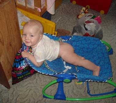 Покажу Славика. Он сам забирается на кресло-качалку и качает себя сам. А ещё Вику нашла в его возрасте.