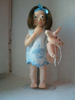 Всем привет! Знакомьтесь эту девочку зовут Клара. Фимо, пластиковые глазки, волосы из искуственных волос (распущенная заколка), + зайчик.