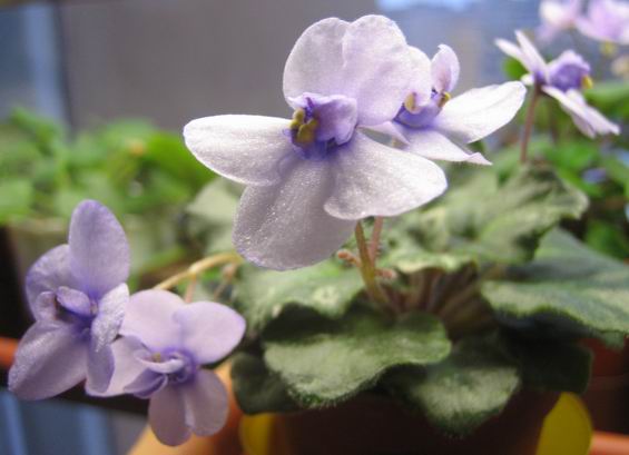 Little Pushover - цветы громадные, самый крупный-5см!) Rob's Booljaro - как всегда, очень нарядный Smitten Kitten - приятное сочетание светло-сиреневого с темной серединкой) Ramblin Lassy - на заднем плане с причудливыми листьями) |