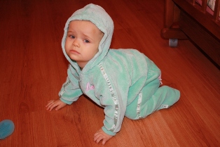 А вот мы в зимнем комбезе и все такие 9-месячные))))(кстати,тоже добрались до кухонной утвари)))