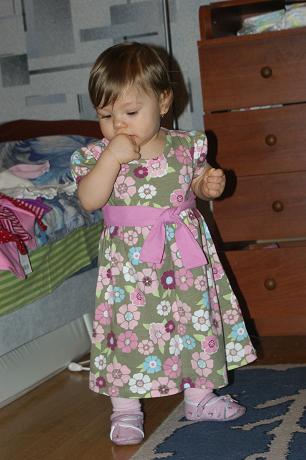привез Эмилии несколько вещей из Берлина. Правда, они все тогда ей были очень велики. Одежка почему-то болотного цвета, ну да ладно, спасибо и на этом . Среди прочего былоплатье, оно на размер 86. Сегодня померяли, а его уже надо носить, т.к. в груди оно только-только (толстухи мы ).В связи с чем вопрос - такие платья вообще актуальны? Как вам кажется, оно симпатичное? В магазинах таких не видела... Скажите ваше мнение, пожалуйста . |